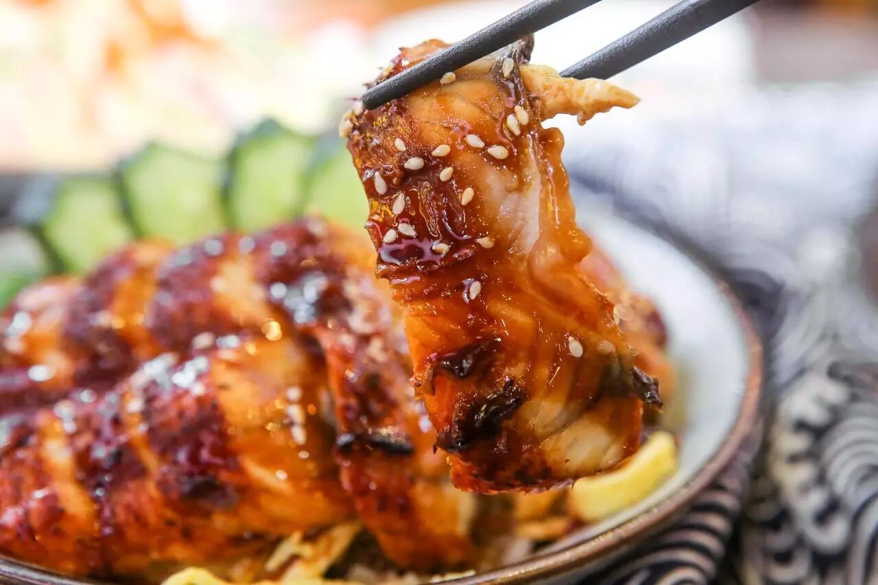淋上特制烧汁后的厚切烤鳗鱼
