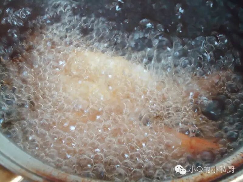 锅内烧油 大约6成热的时候(180度) 放入大虾炸制