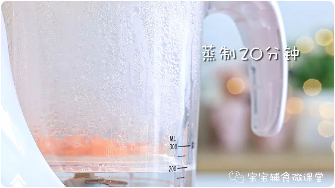 胡萝卜放在底层,玉米放在第二层,在辅食机内蒸制20分钟。