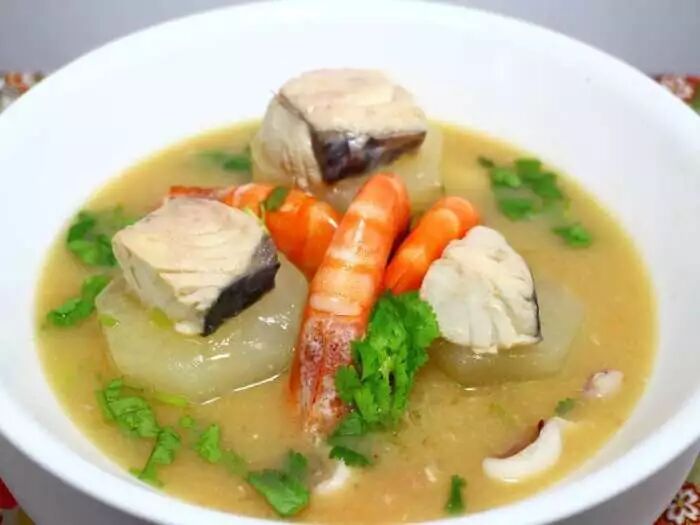 海鲜味增汤加了白萝卜,有海鲜味,还有田园风味。可说是鲜上加鲜,美味无比!就因为尝过这样的美味,所以也常出现在我家餐桌上。我也想介绍给朋友们,别错过现在正是品尝鲜美的白萝卜季节!