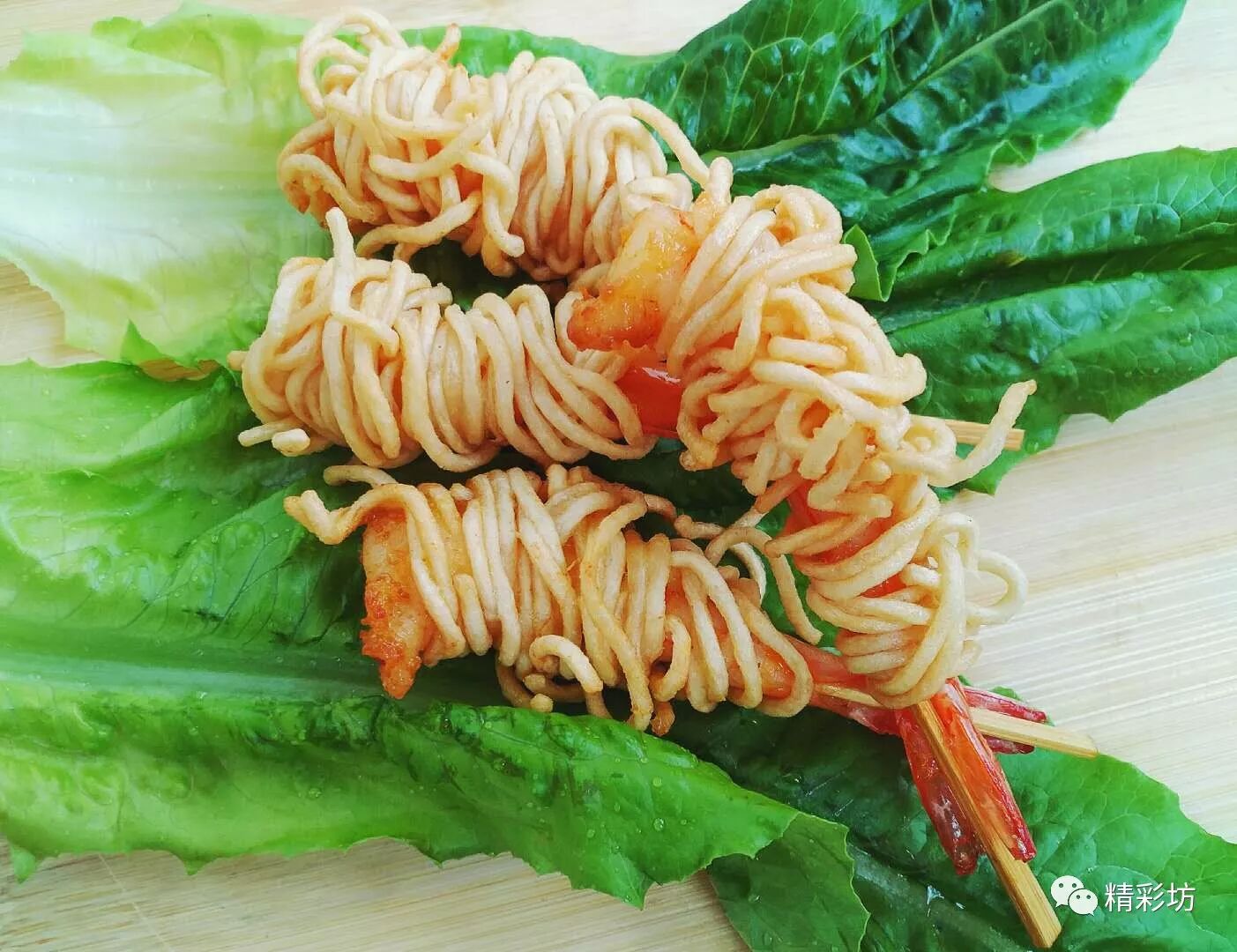 再用卷的方式把面线层层包裹虾身