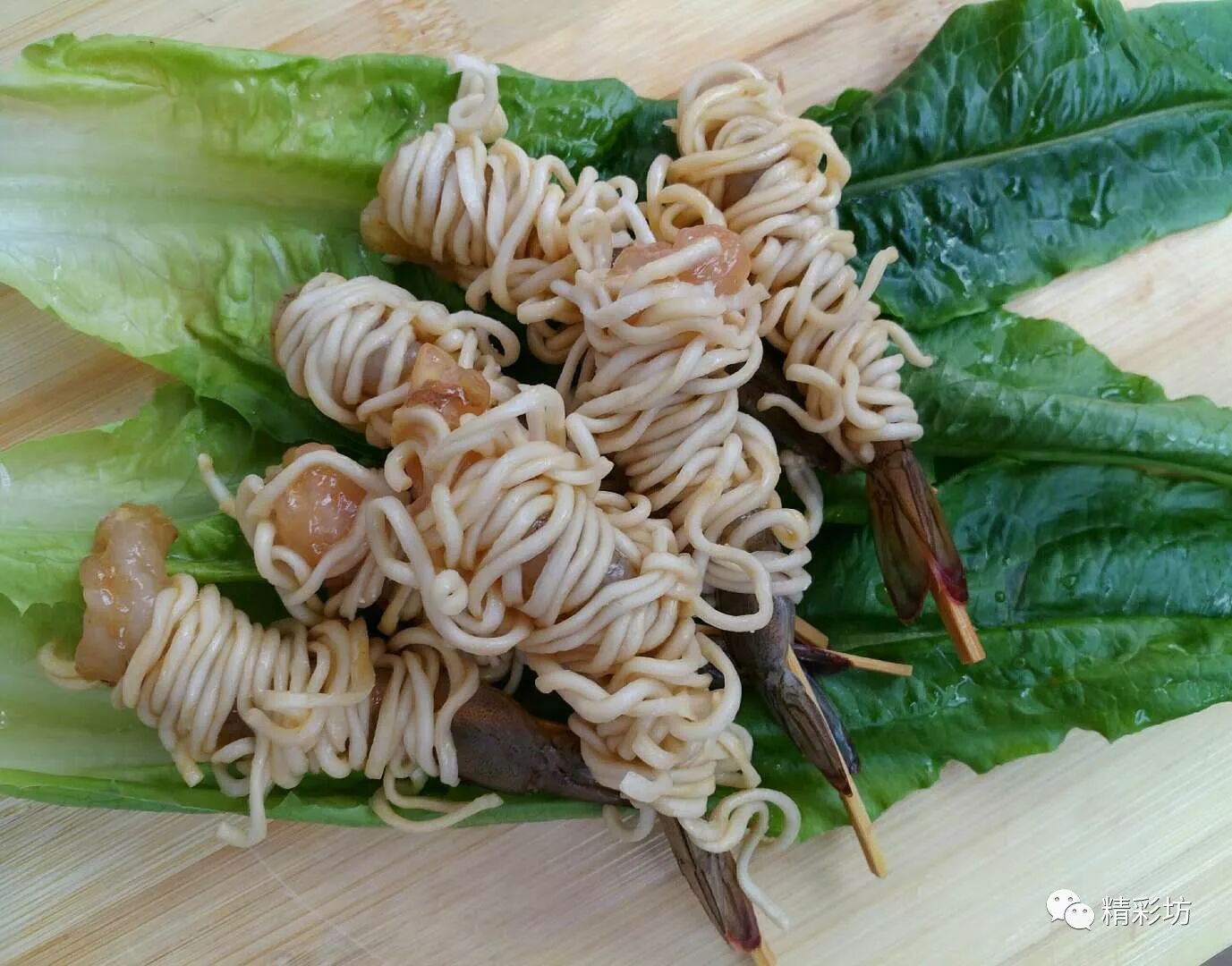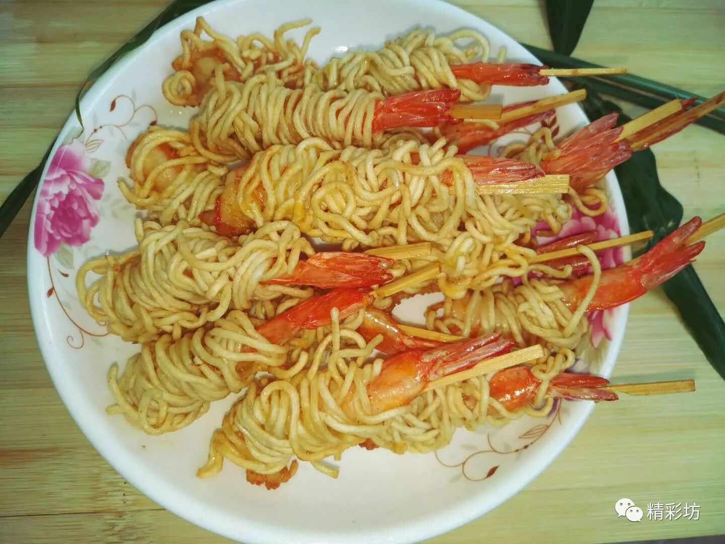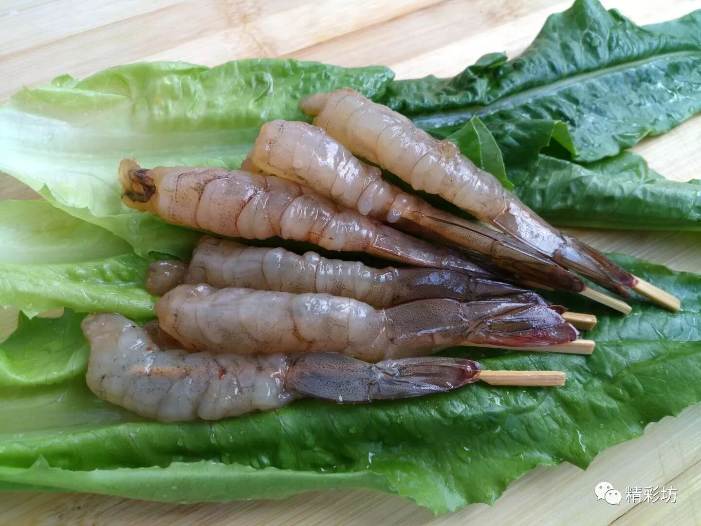 为了更好操作将虾穿了竹签(亦可不穿)