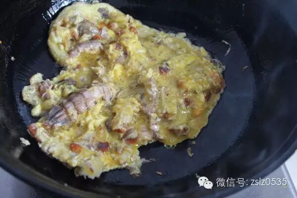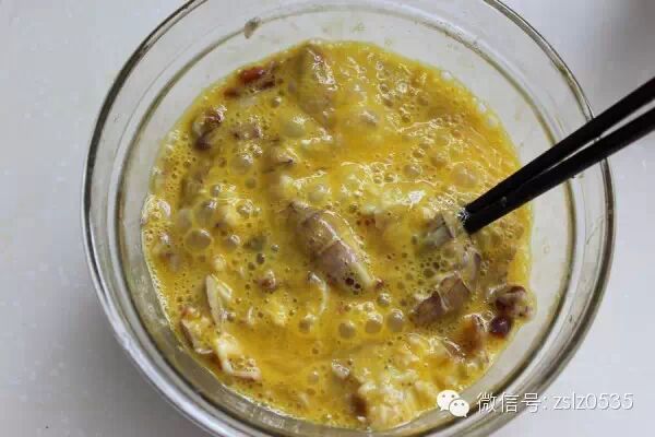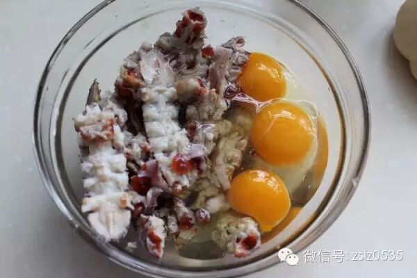 爬虾蒸熟,把肉剔出来,加鸡蛋拌匀。
