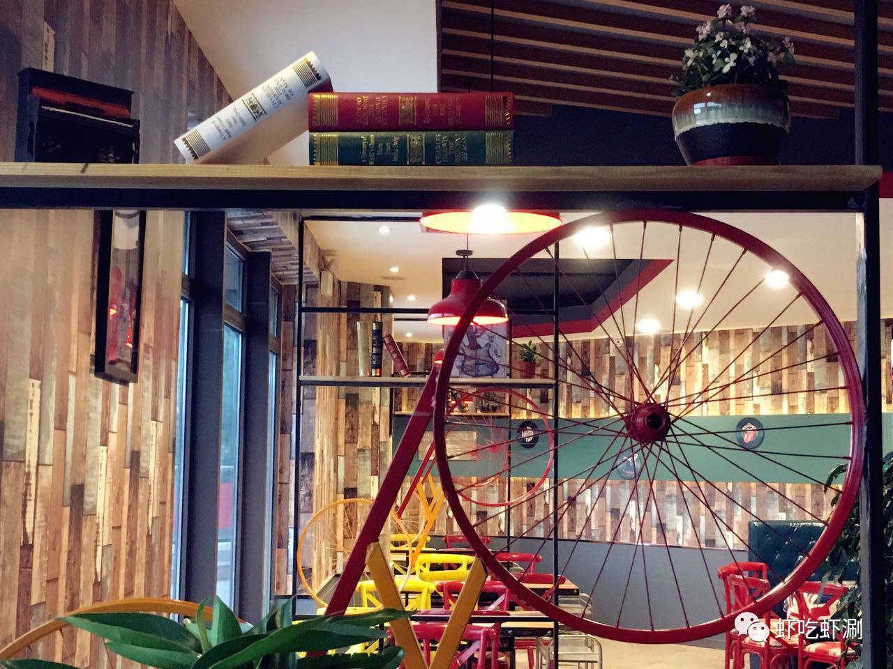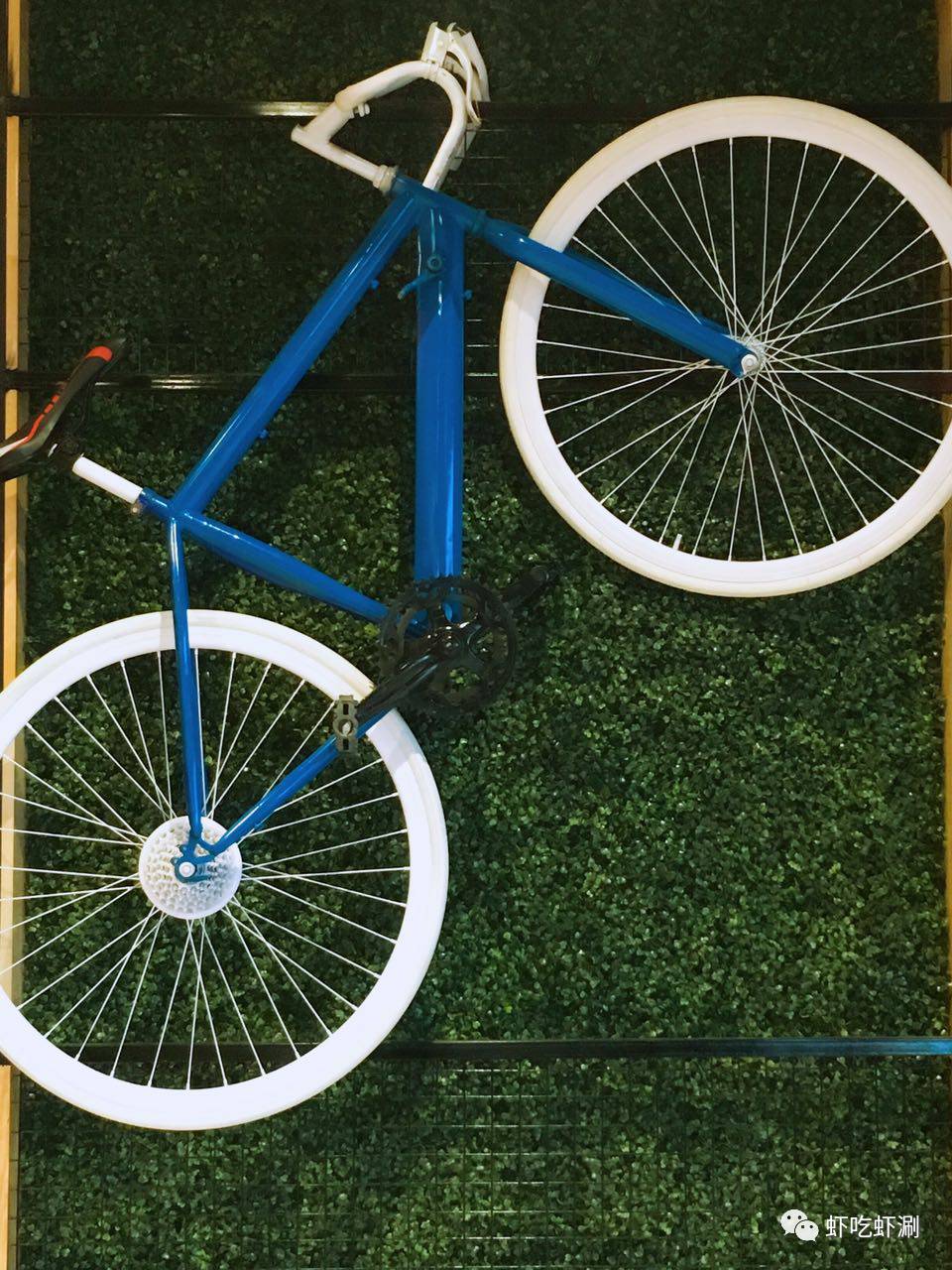 墙上的自行车确实很有个性,是90后的风格,虾吃虾涮君猜测,骑车很可能是老板的个人爱好,果然是在秀。