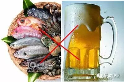 在吃海鲜时最好别饮用啤酒。虾、蟹等海产品在人体代谢后会形成尿酸,而尿酸过多会引起痛风、肾结石等病症。如果大量食用海鲜的同时,再饮用啤酒,就会加速体内尿酸的形成。所以,在大量食用海鲜的时候,千万别喝啤酒,否则会对身体产生不利影响。