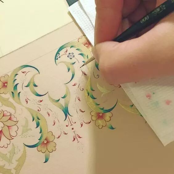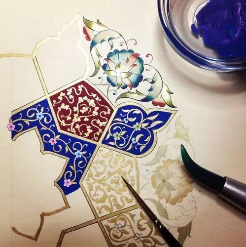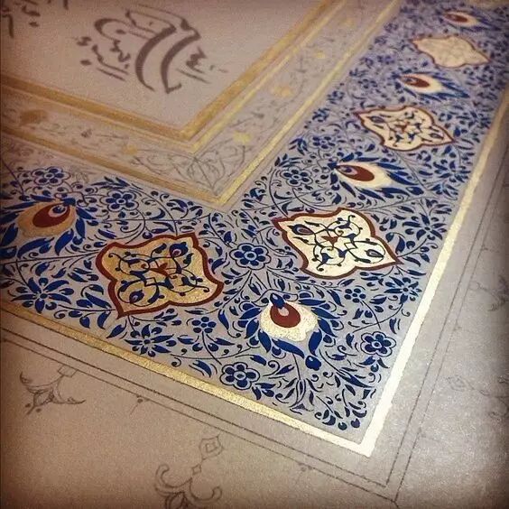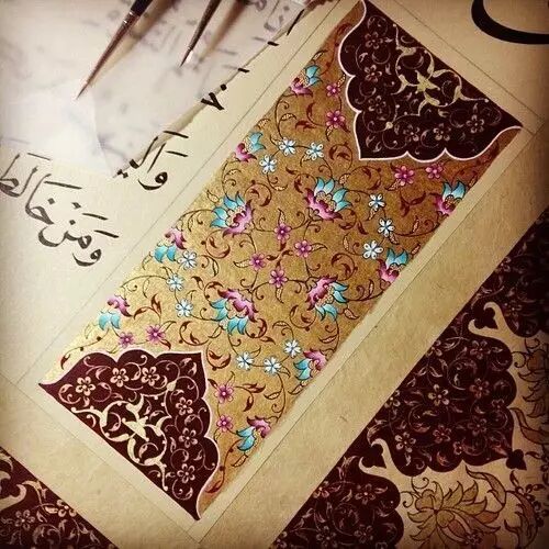 颇为引人注目的是,作为伊斯兰建筑和工艺美术的一种艺术意匠,《》中的某些章节及其诗文字句曾发挥了相当重要的作用。尤其是那些结体优美的字迹,则是伊斯兰美术中的一种重要形式。从8世纪到9世纪,逐渐图案化。