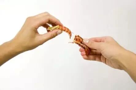 步骤2:拔掉虾钳,吃掉钳里的虾肉。