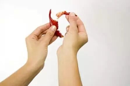 3.左手把壳折开,右手按筷子,两手同时反方向用力。