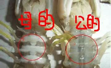 透过灯光可以看见母的背部中间有一条明显的实线,是虾子映衬所致,而公的则通体一种颜色。