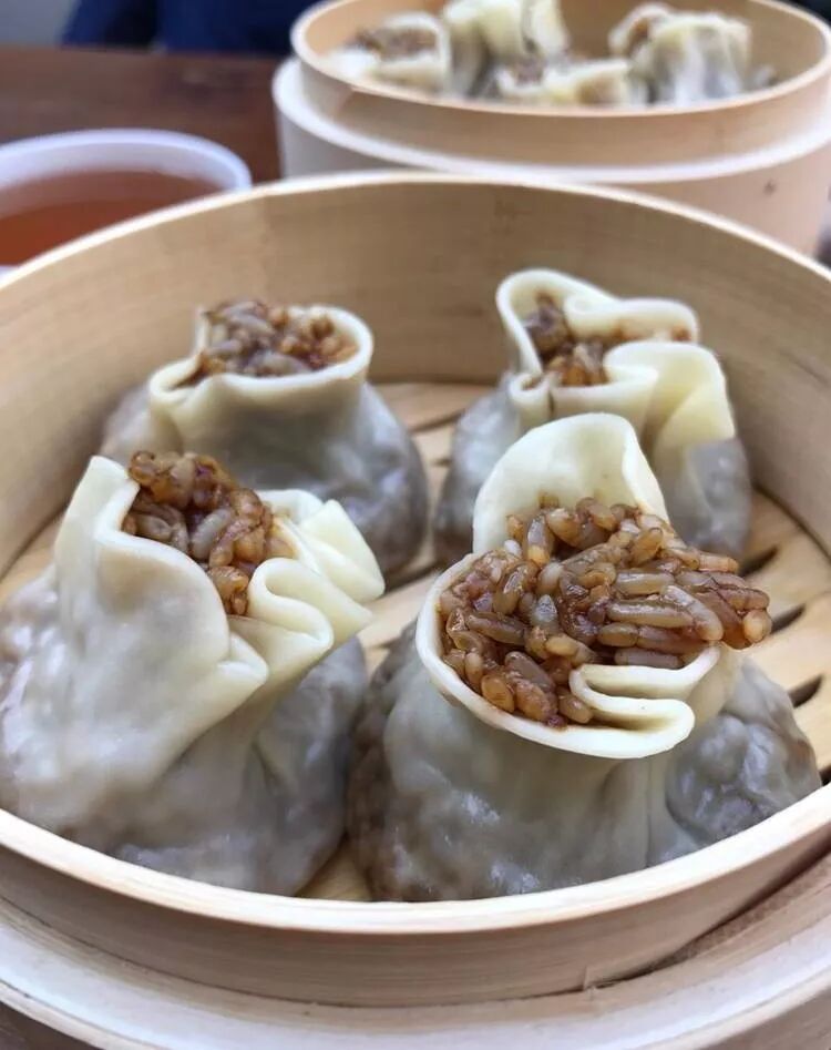 馅多皮薄的烧卖,搭配清爽的火龙果。