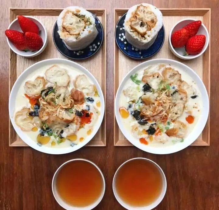 咸豆腐,油条切段,紫菜,还有一个饭卷,