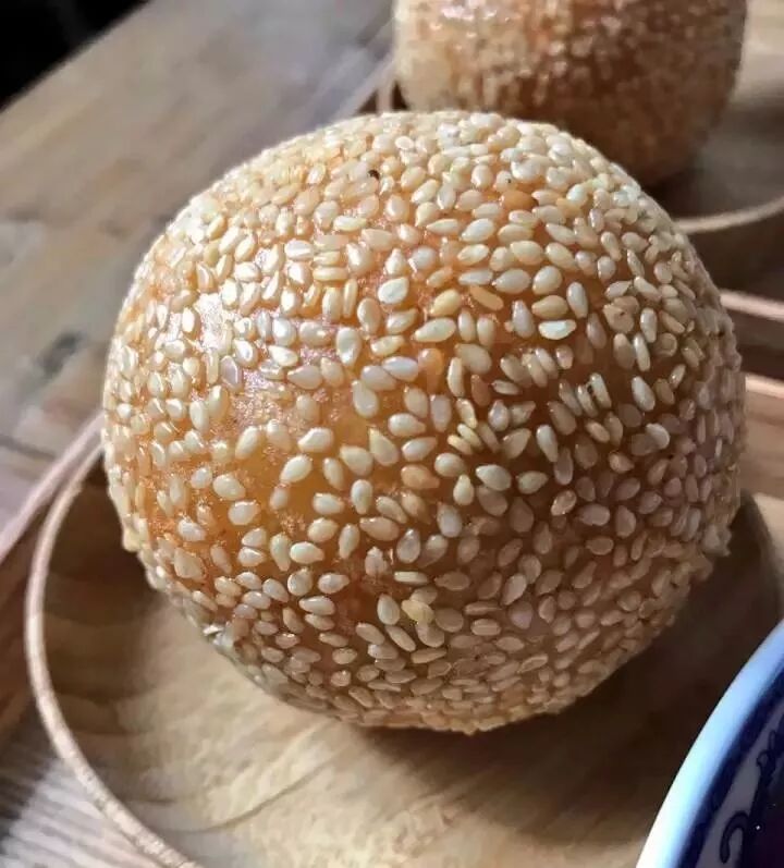 烧鸡,搭配油炸芝麻糯米团与一杯红茶