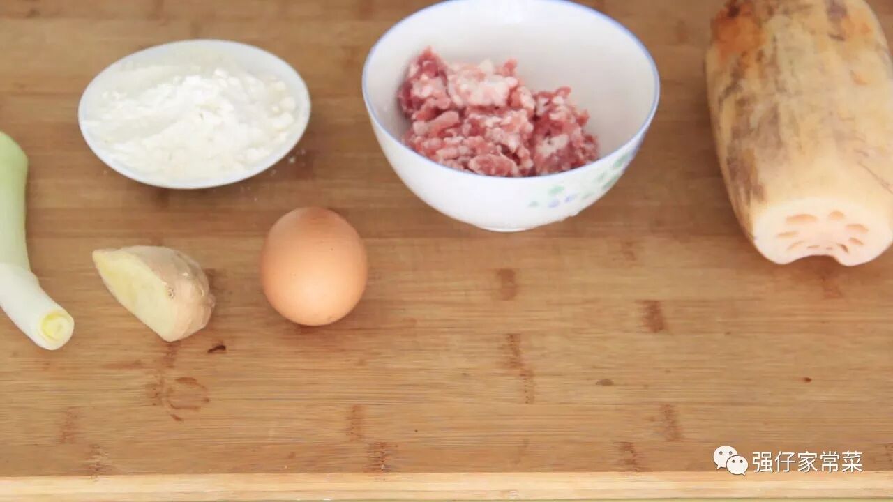 1.首先备料:莲藕、肉末、鸡蛋、姜、葱、面粉