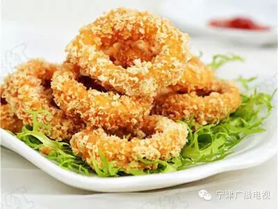 原料:鱿鱼圈、鸡蛋、玉米淀粉、面包糠、盐、柠檬汁、黑胡椒粉、料酒