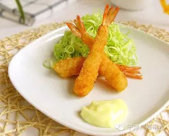 原料:虾、鸡蛋、面粉、面包糠、盐、黑胡椒、料酒