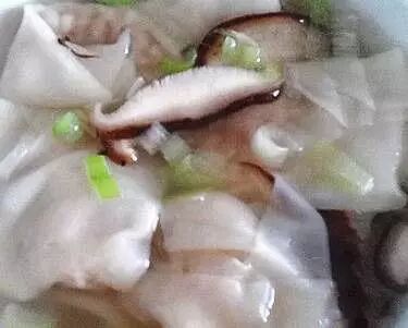 2. 用馄饨皮把馅包成一个个元宝状的馄饨,等水开后,下入馄饨,馄饨浮起盛入事先放有虾皮、紫菜、胡椒粉、豉油、醋的料汁里,再浇上一勺热汤,淋入香油,撒上青蒜末即可。