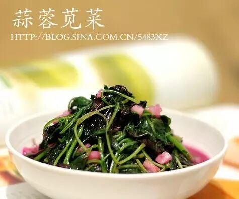 2.热油锅,蒜末煸香,加入草头,大火翻炒。