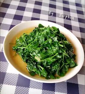 1.煮一锅水,烧开后加一点油和盐,放入豌豆苗焯烫一下。