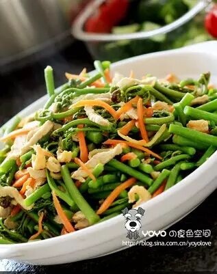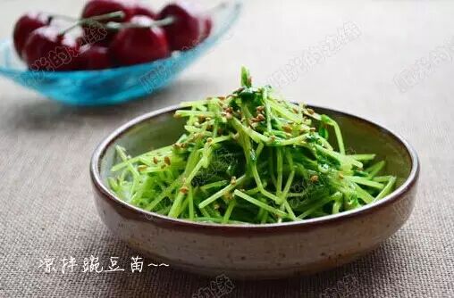 豌豆苗在有的地方也叫做龙须菜。豌豆苗为豆科植物豌豆的嫩苗,一般只食用嫩梢和嫩叶,清香柔嫩,营养丰富,含有多种人体必需的氨基酸。豌豆苗味甘、性平,有益中气,利脾胃。