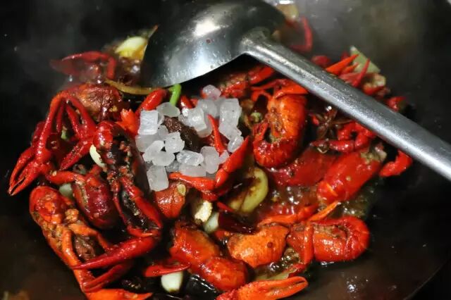 冰糖30克 ,没有用白糖代替也可以。虾子最后的味道是麻辣鲜香还要带点甜!