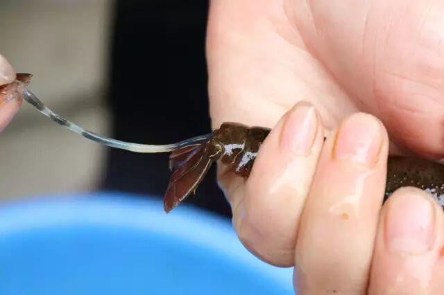 拉下红裤头(拽掉尾节、尾肢);