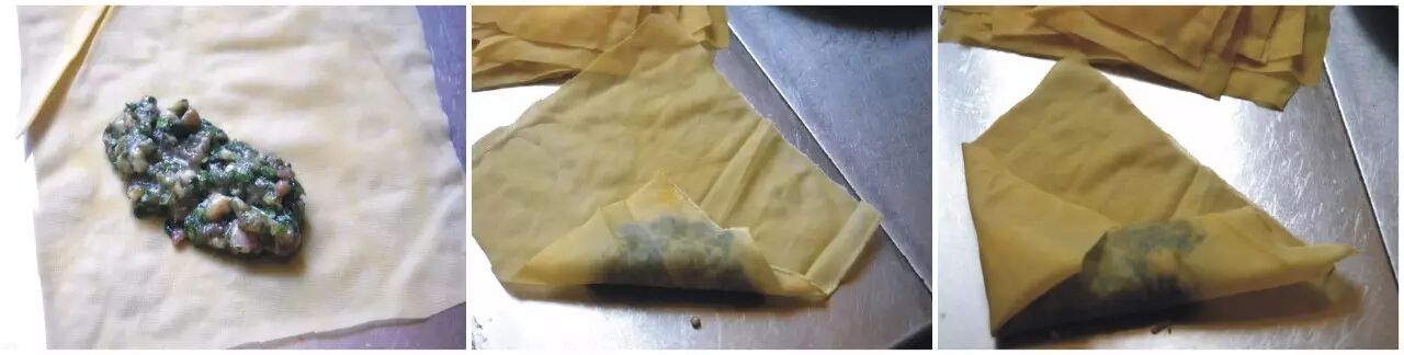 4. 用切好的小份百叶,把搅拌均匀的菜馅放上。