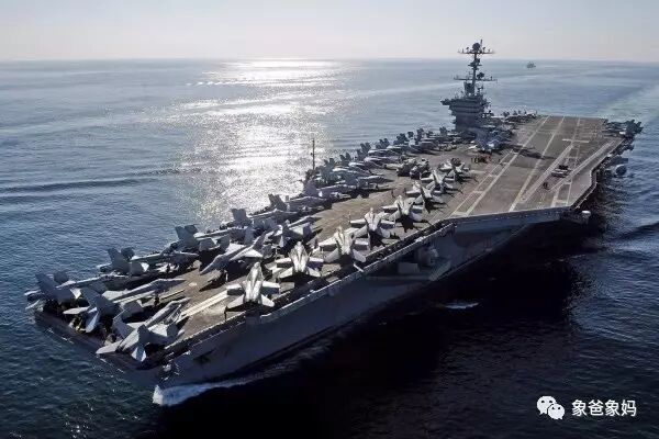 那么,我们国家生产的这种航空母舰是世界上最大的吗?还不是。最大的航空母舰是美国生产的。就是下面图片中这个。它的长度有332米。比我们的长32米。最多能停放130架战斗机。
