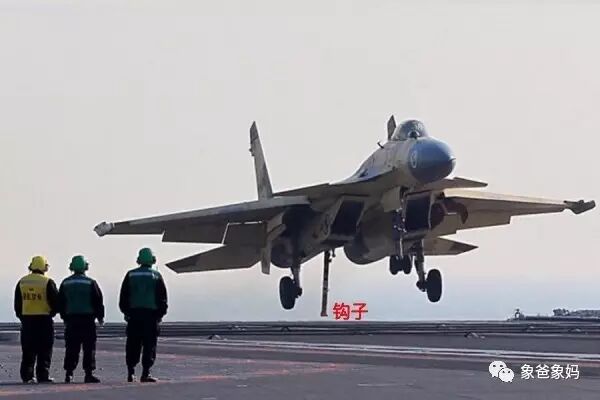 这时有同学可能要问了,飞机起飞的时候要依靠跑道,降落的时候也需要啊,既然起飞的长度不够,要把船头翘起来,那降落的时候咋办呢?当然有办法了,航空母舰上面的飞机尾部都有一个钩子,降落的时候会勾住跑道上的一根钢绳,这跟绳子会拽着飞机慢慢停下来。是不是很聪明?