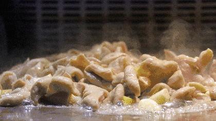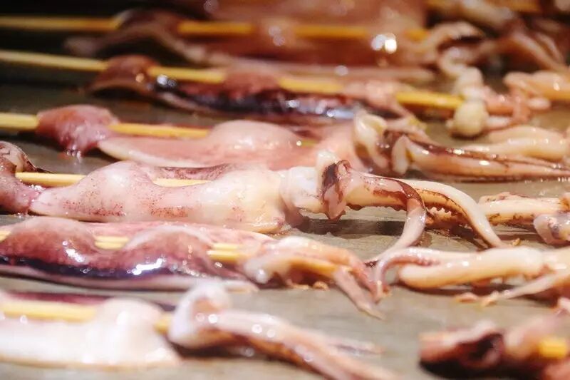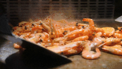 滋滋作响的油花,肉眼可见的香气,小编感觉自己在铁板烧面前都形成通感了呢!忍不住趁热都尝了一个遍,牛排的肉鲜嫩多汁,精细不柴;烤虾和鱿鱼味美,有在海边吃海鲜的感觉;肥肠党千万不能错过铁板烧肥肠哦~