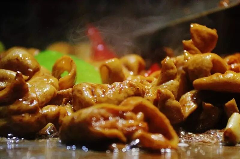 伴随着铁板温度的升高,肉的鲜嫩,虾和鱿鱼的鲜美,以及肥肠的爆香喷薄而出!每一种食材都足够分量,在完成之前浇上一点黑椒酱汁或者撒上少许胡椒粉,这滋味,简直就是星级铁板烧厨房的水准呀!