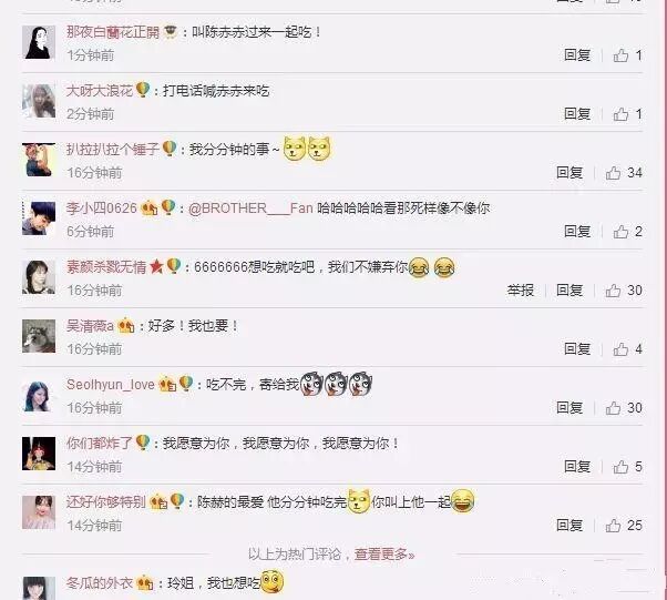 见贾玲这么烦恼,网友也是纷纷献策“叫陈赤赤过来一起吃!”、”打电话叫赤赤一起来吃“、”陈赫的最爱,他分分钟吃完,你叫上他一起“