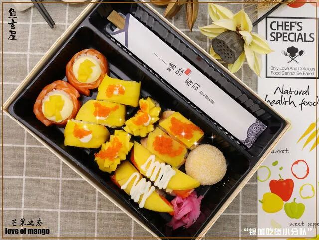 喜欢吃芒果的吃货们,千万不能错过,如此美味的芒果盛宴。色泽诱人、肉质细嫩,且口感爽滑的三文鱼片,包裹着米饭,再放上清香甜蜜的芒果粒点缀。或是用金黄汁多的芒果片包裹着米饭,加以色泽红艳,圆润饱满的鱼子酱,一口吃下去,满嘴爆香,回味悠长。