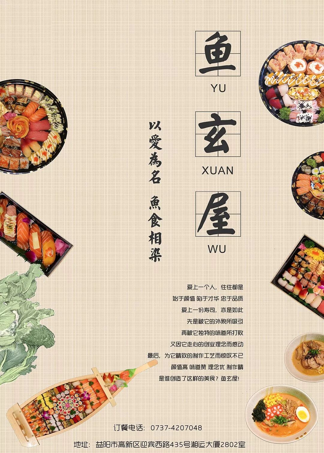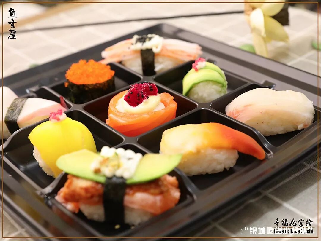 鱼玄屋的寿司以新鲜食材为主,选用的三文鱼、北极贝、鲜虾、金枪鱼、鳗鱼、鹅肝等,均是出自新鲜无污染纯净海域,出海后以最快的速度空运至长沙,肥美无比,口齿留香。