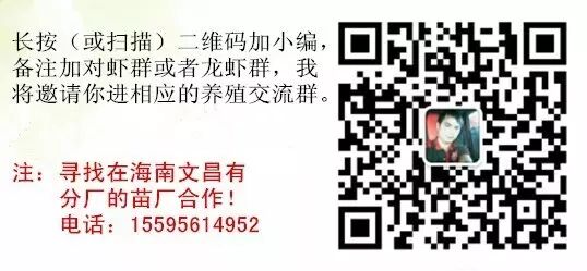 长按上方二维码添加小编为好友,也可以添加小编(微信号:15595614952)为好友并备注(加龙虾群或者对虾群),邀请您加龙虾群或者对虾群交流学习。有QQ的朋友也可以加中国最大的养虾QQ群。QQ一群:526066249,QQ二群:546837393。