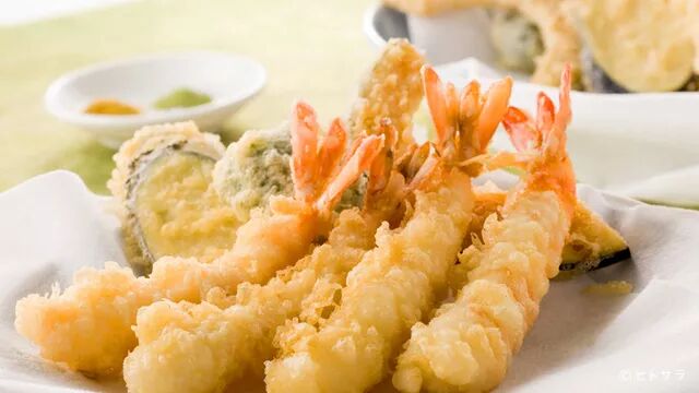 天妇罗被一层薄薄的面衣包裹,在热油中迅速成型,将面衣中的食材包住,食材里的水分蒸发出来被面衣裹住了,在面衣里将食物蒸熟。所以天妇罗是利用水油不溶的原理将食物脱水处理,将食材多余的水分除去,使食材味道更为浓郁。