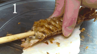 将活蹦乱跳地它经过煎炸烹炒闷,鲜活的皮皮虾成为腹中美食。