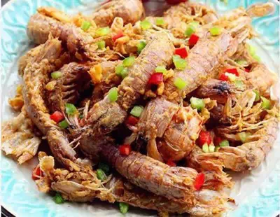 做法:皮皮虾用清水洗净沥干。葱和辣椒切段,姜切片。锅内放入适量的秘制香辣油加热,放入辣椒、花椒粒、豆瓣酱、葱、姜煸炒,然后把皮皮虾放入一同炒制,等到虾身变色后,稍微加上一点清水, 用小火稍微炖制一会儿,就可出锅了。