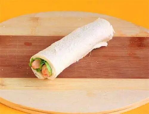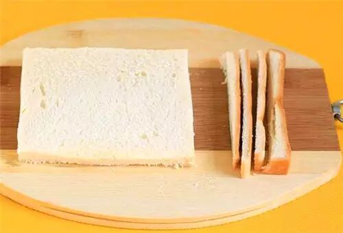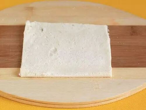 1、吐司切去硬边,用擀面杖擀薄擀平;