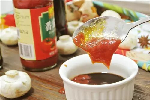 2、1勺醋、半勺蚝油、3勺番茄酱、1勺白糖,调成茄汁;