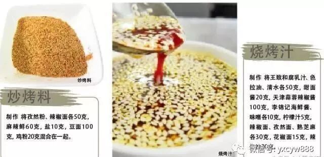 蒜蓉酱250克,孜然粉、熟苏子粉各25克,熟花生粉50克,黑胡椒粉10克,吉士粉20克,五香粉、熟芝麻各5克,海鲜酱、叉烧酱各15克,花椒水100克,生蛋黄2个,葱油75克,芝麻油2克,盐和味精各12克。