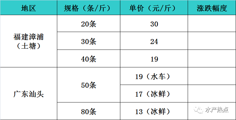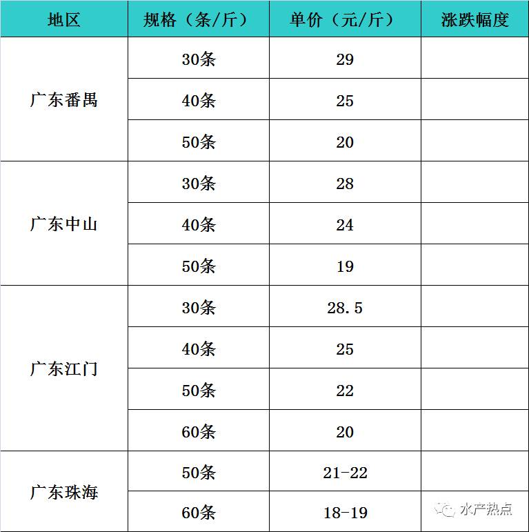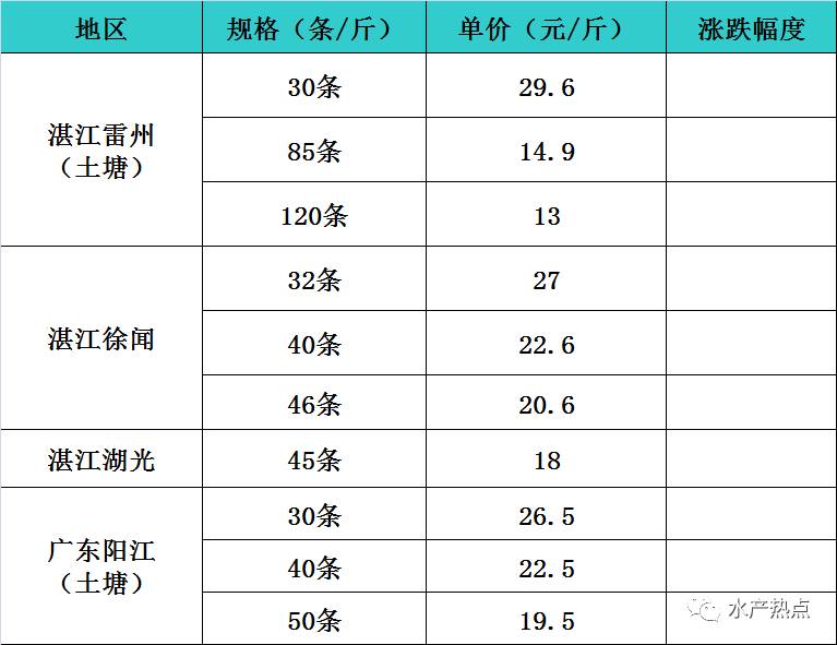 广东阳江:台风过后,虾红体病爆发,还有偷死等症状。目前30条/斤规格的价格变化不大,40-60条/斤的价格微调,下跌了0.5元/斤左右。