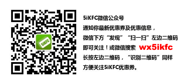 更多优惠券,手机访问 m.5ikfc.com 或点击下方“阅读原文”