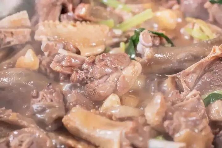 满满一锅的鹅肉在汤汁里咕噜咕噜的,