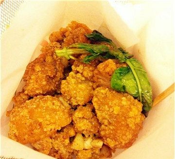 盐酥鸡超正点,酥皮厚得刚刚好,炸完后加葱蒜辣椒一块儿拌,香喷喷只恨不够吃。跟烂大街的盐酥鸡差别就在这蒜香上。还有炸全翅、炸鸡腿和炸鸡排,还要赞一下梅甘地瓜,个儿巨大,有点酸甜,来个套餐妥妥地大满足。