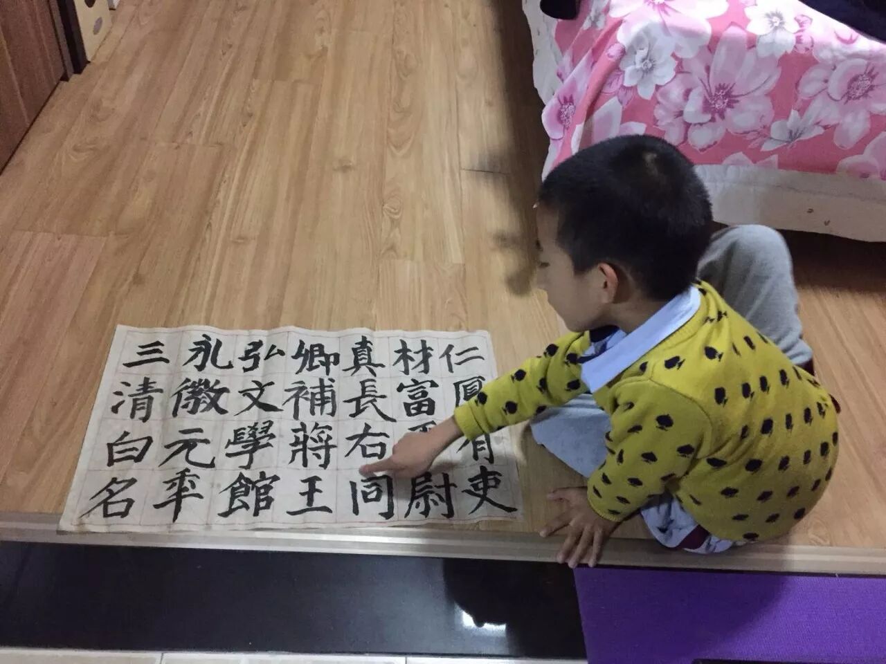 晚上,儿子回到家中,正好我也写完了上面的文字。儿子开心地向我展示了他今晚写的书法作品,那一刻的我突然幸福地意识到:这小家伙,长大了!