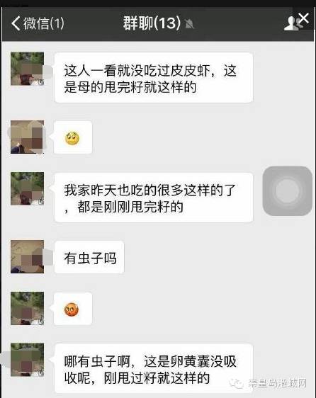 今天早上我们也问了一些北戴河的渔民,他们的回答是这个季节的皮皮虾公的体内有时确实会有一条白线但那绝对不是寄生虫,咱们把皮皮虾煮熟锅里飘着一层白色或者皮皮虾附着的白色类似沫子的就是那条白线。