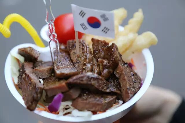 15块钱一整块煎牛排,还配有薯条和沙拉,下面的杯子里装的是柠檬茶~牛排煎得非常的嫩,但是薯条和柠檬茶就太一般了~