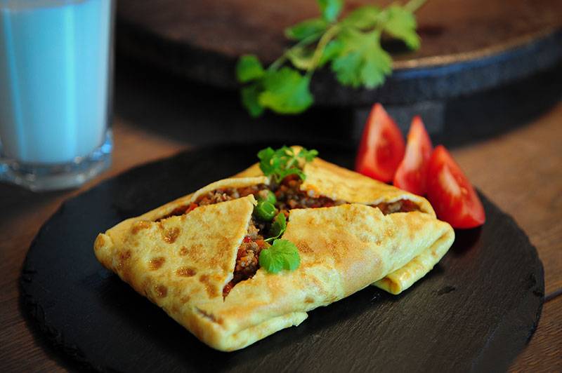 土耳其散蛋饭是用炒至金黄的鸡蛋,加入西红柿、洋葱、辣椒以及偶尔会用到的土耳其火腿制成的一道赏心悦目的美食。