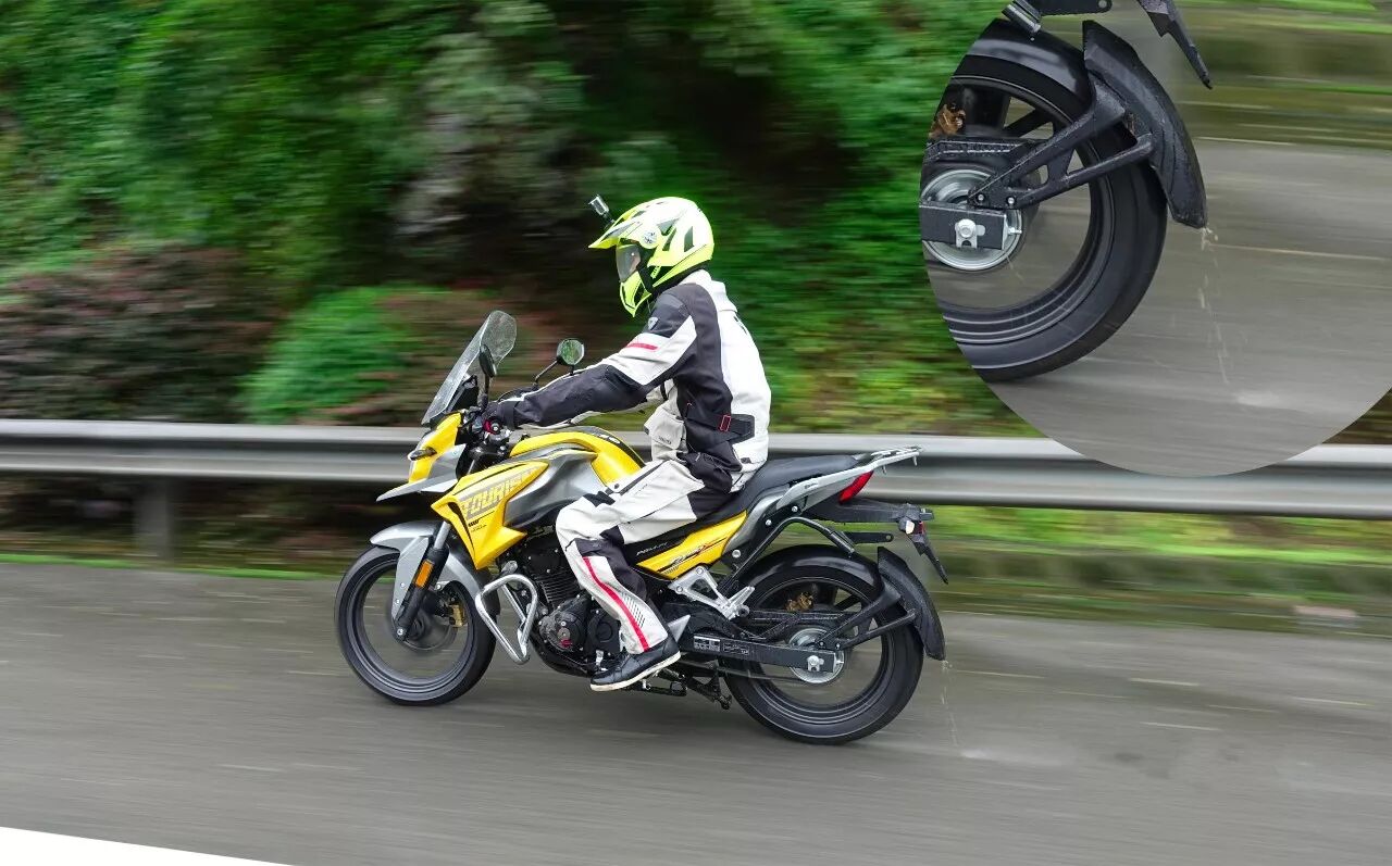 运动化配置的子午线轮胎,在干、湿路面上的表现可谓是“冰火两重天”;如果能配置齿纹较深的半越野胎,可能会更适合摩旅骑行。