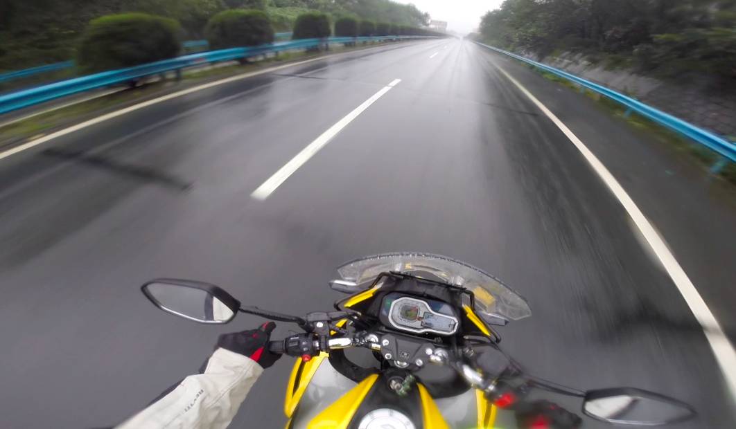 高速巡航时车体的稳定性不错,前部风挡位置较高,能够起到很好的风保护作用。后部增加挡泥板的作用非常明显。高速疾驰,也未见泥水飞溅。这很实用。